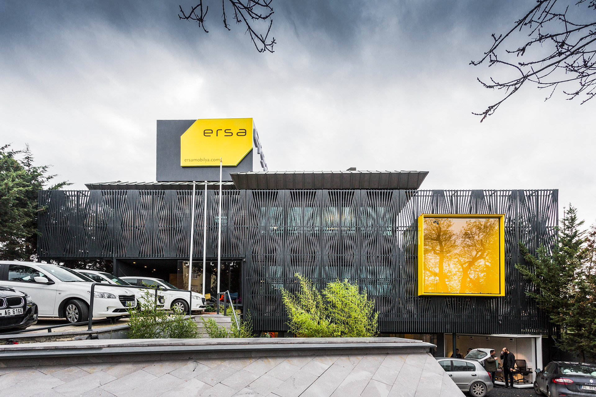 ERSA Ideas House is a showroom and creative hub for furniture design, visual design, and new media production. The design is a reflection of ERSA’s CORE IDEAS for the furniture company’s social exchanges, its showroom experience and its workplace.The experience is unveiled behind a decorative façade of moiré inviting one into its core, a multi-level lantern connecting the diverse functions. The structure is illuminated with natural light and simple finishes while the vibrant colors and atmosphere is created with the collection and artifacts intended to stimulate creativity and reflect firm’s attitude.